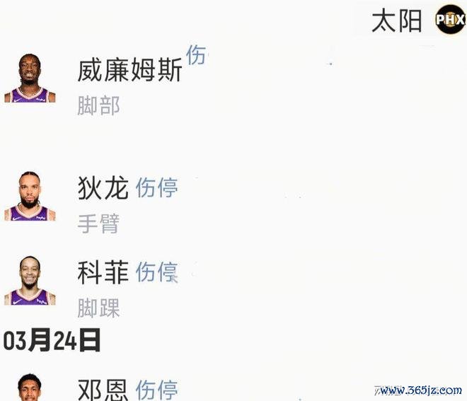 不过太阳这边伤病满营,狄龙、科菲、威廉姆斯都打不了。