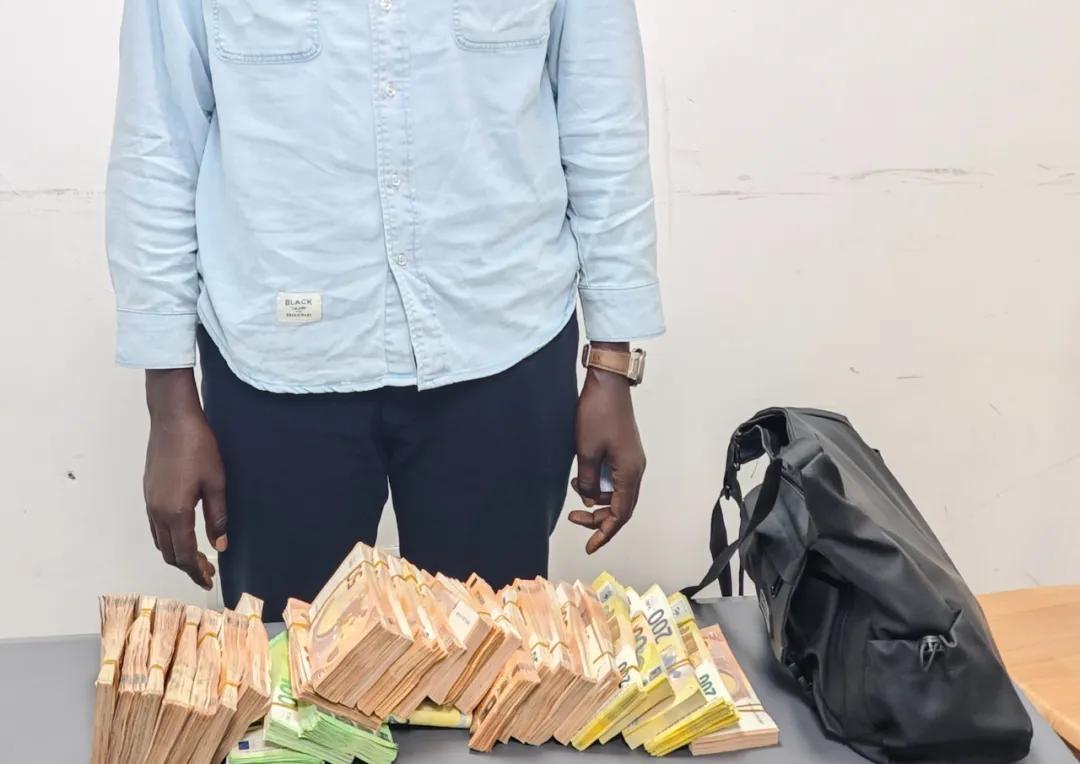 广州海关所属广州白云机场海关关员在对一架进境航班进行监管时,发现1名选择“无申报通道”通关的旅客携带的行李机检图像异常。海关关员随即拦截并进一步查验,发现该旅客随身携带的背包内装有成捆的欧元现金,包含200、50、20等不同面值,均未向海关申报。经清点,共查获超量未申报欧元22.4万元,折合人民币超186万元。